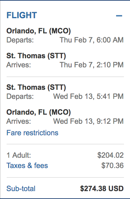 Orlando (MCO) to St. Thomas (STT) for $274 round-trip on JetBlue:
