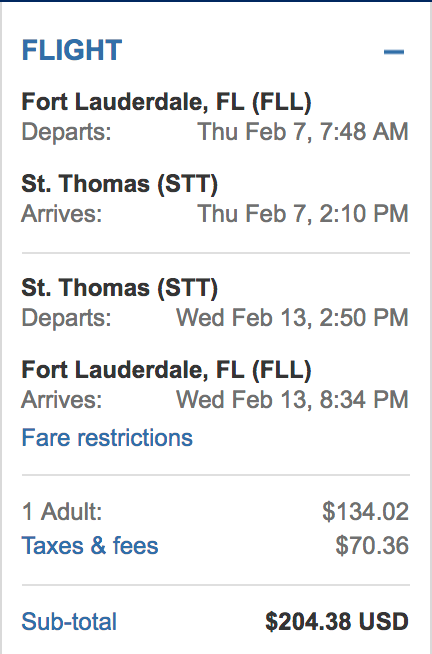 Fort Lauderdale (FLL) to St. Thomas (STT) for $204 round-trip on JetBlue: