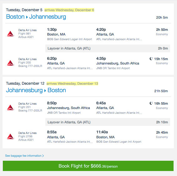 Boston (BOS) to Johannesburg (JNB) for $666 round-trip via Priceline: