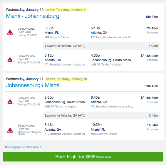 Miami (MIA) to Johannesburg (JNB) for $666 round-trip via Priceline: