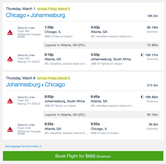 Chicago (ORD) to Johannesburg (JNB) for $666 round-trip via Priceline: