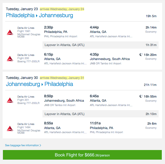 Philadelphia (PHL) to Johannesburg (JNB) for $666 round-trip via Priceline: