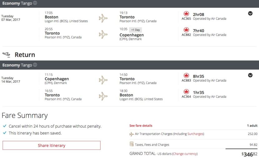 Denver (DEN) to Copenhagen (CPH) for $395 round-trip in March on Air Canada: