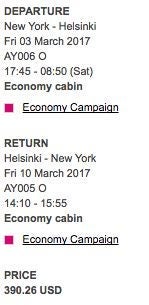 New York (JFK) to Helsinki (HEL) for $390 round-trip in January on Finnair:
