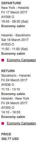 New York (JFK) to Stockholm (ARN) for $393 round-trip in January on Finnair: