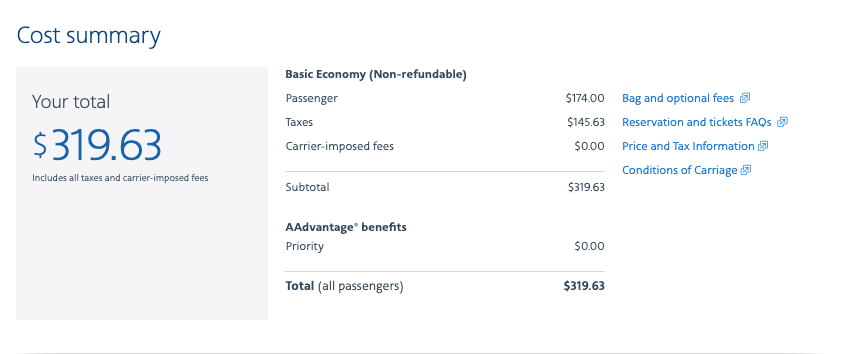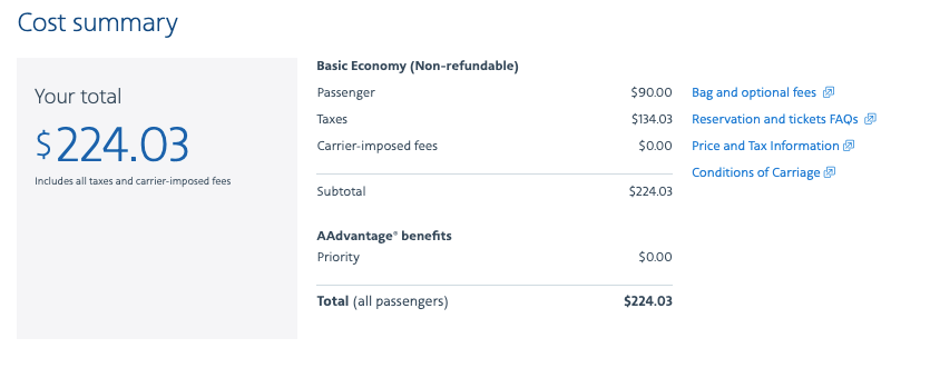 Cost: $225+ round-trip in basic economy