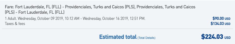 Fort Lauderdale (FLL) to Providenciales (PLS) for $225 round-trip + nonstop on JetBlue:
