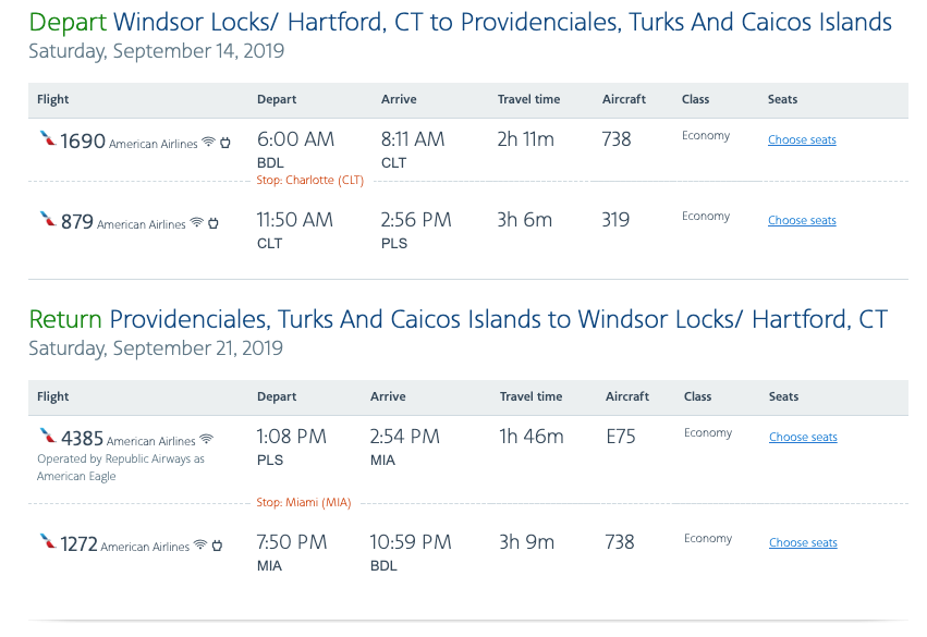 Hartford (BDL) to Providenciales (PLS) for $282 round-trip on American: