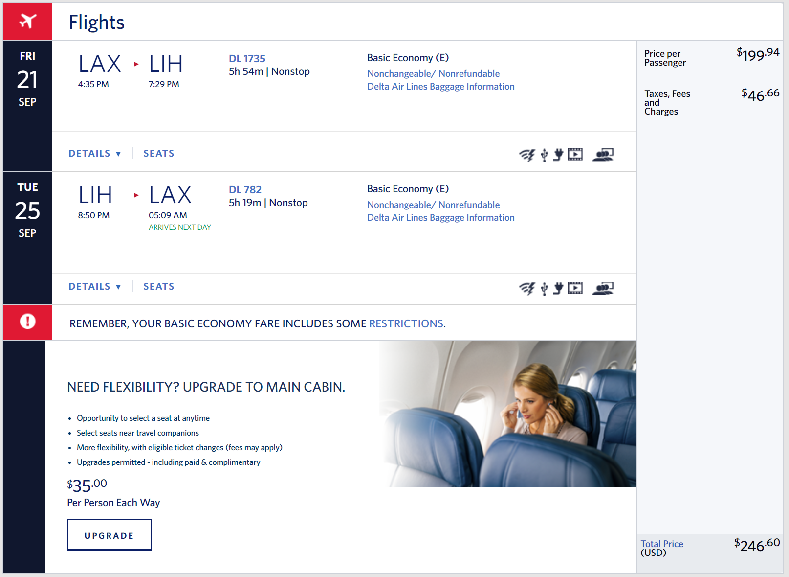 Los Angeles (LAX) to Lihue (LIH) for $247 round-trip nonstop in September on Delta Basic Economy: