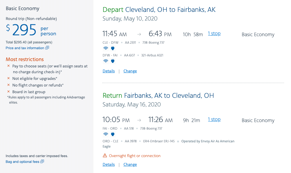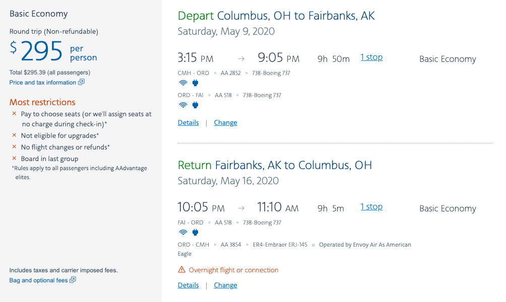 Columbus (CMH) to Fairbanks (FAI) for $295 round-trip on American: