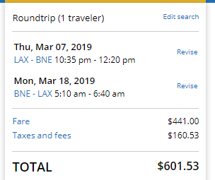 Los Angeles (LAX) to Brisbane (BNE) for $602 round-trip on United/Qantas:
