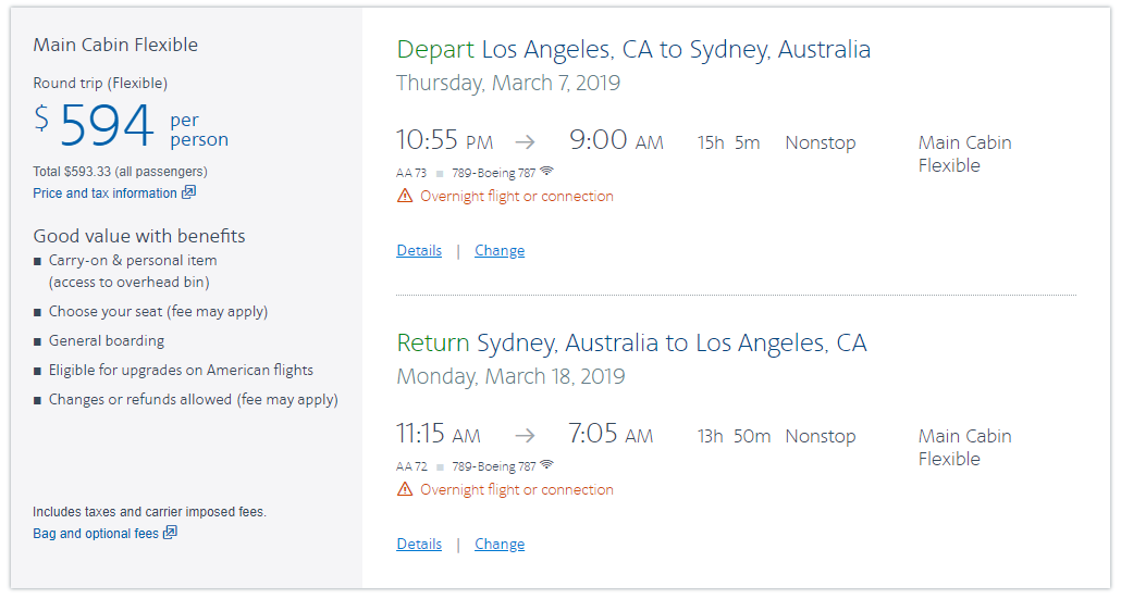 Los Angeles (LAX) to Sydney (SYD) for $593 round-trip nonstop on American Airlines: