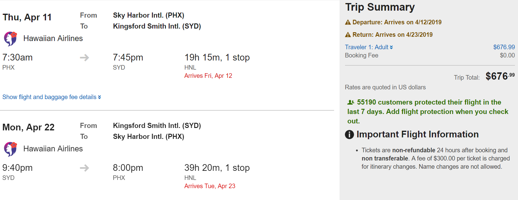 Phoenix (PHX) to Sydney (SYD) for $677 round-trip on Hawaiian — with 24-hour layover in Honolulu: