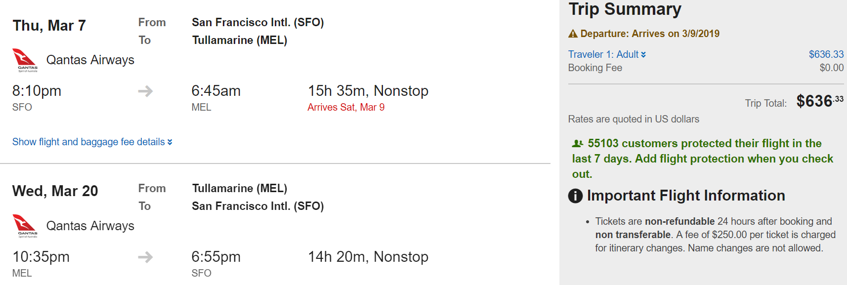 San Francisco (SFO) to Melbourne (MEL) for $636 round-trip nonstop on Qantas: