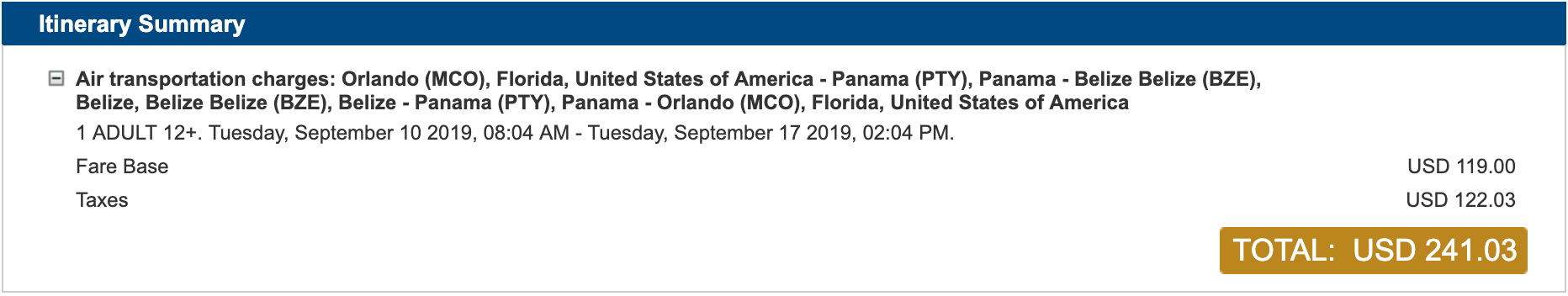 Orlando (MCO) to Belize City (BZE) for $242 round-trip on Copa: