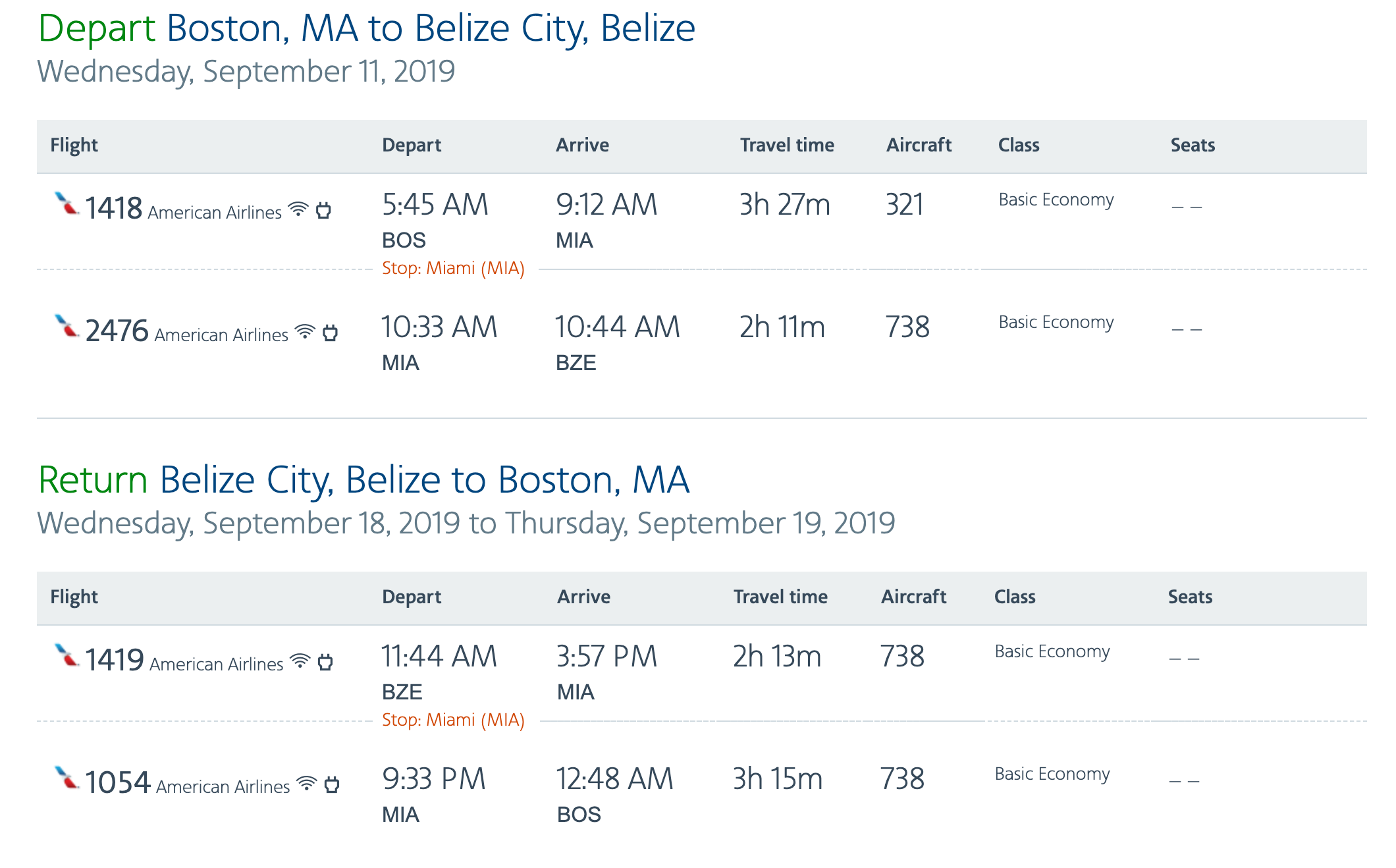 Boston (BOS) to Belize City (BZE) for $285 round-trip on American: