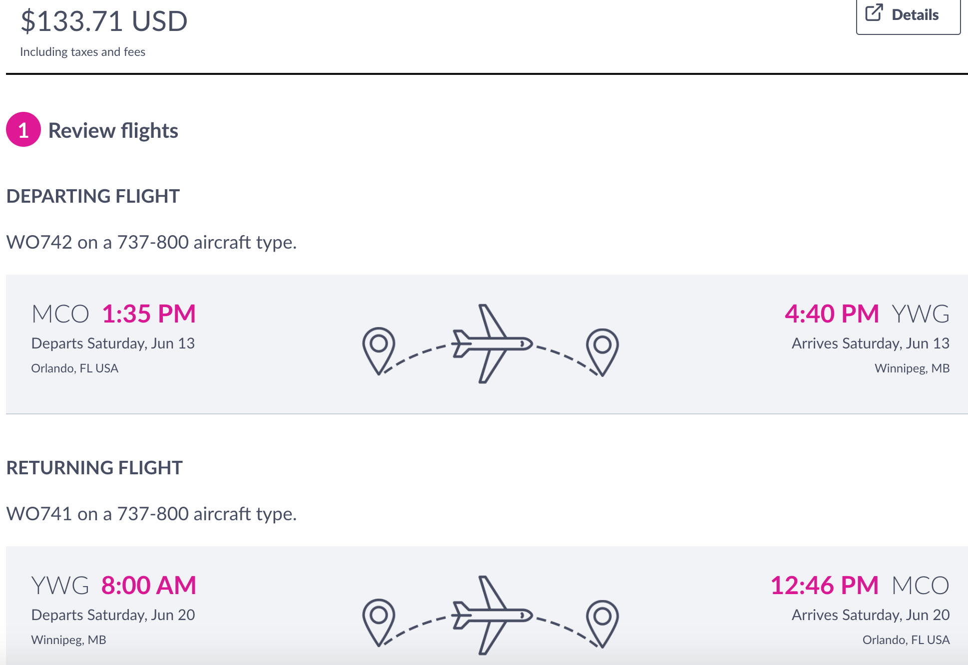 Orlando (MCO) to Winnipeg (YWG) for $134 round-trip on Swoop:
