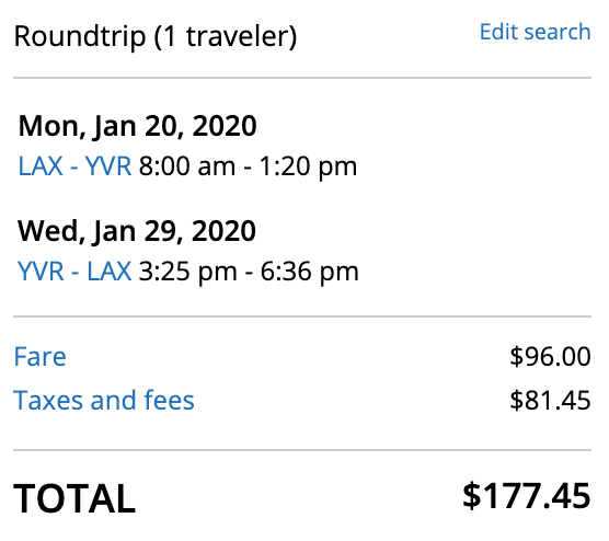 Los Angeles (LAX) to Vancouver (YVR) for $177 round-trip on United: