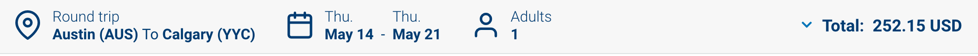 Austin (AUS) to Calgary (YYC) for $252 round-trip on WestJet: