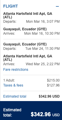 Atlanta (ATL) to Guayaquil (GYE) for $343 round-trip on JetBlue:
