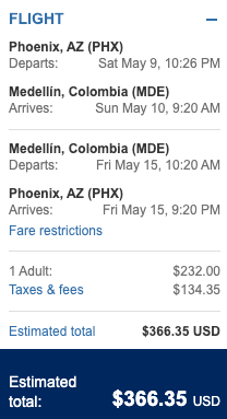 Phoenix (PHX) to Medellín (MDE) for $366 round-trip on JetBlue: