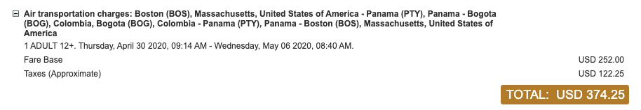 Boston (BOS) to Bogota (BOG) for $374 round-trip on Copa: