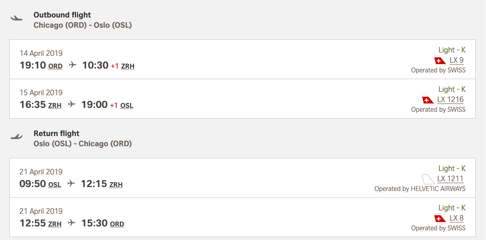 Chicago (ORD) to Oslo (OSL) for $387 round-trip on Swiss in April: