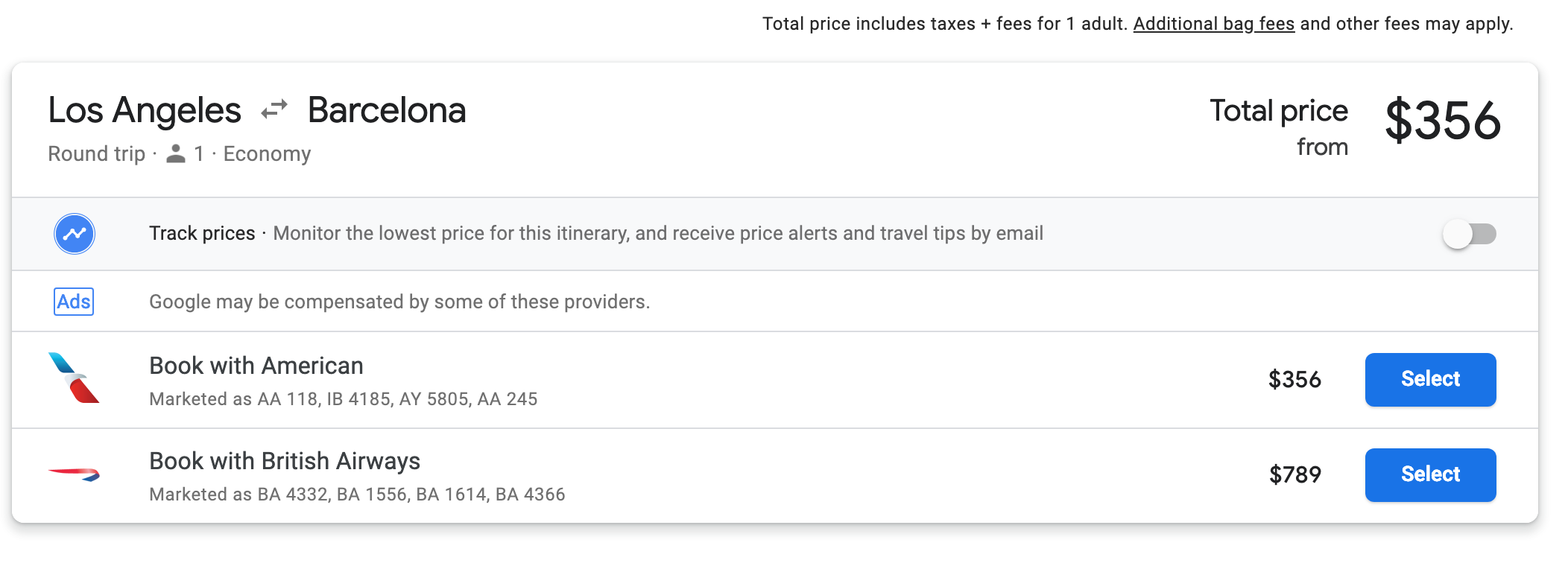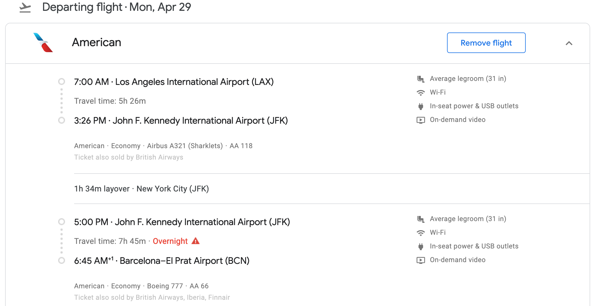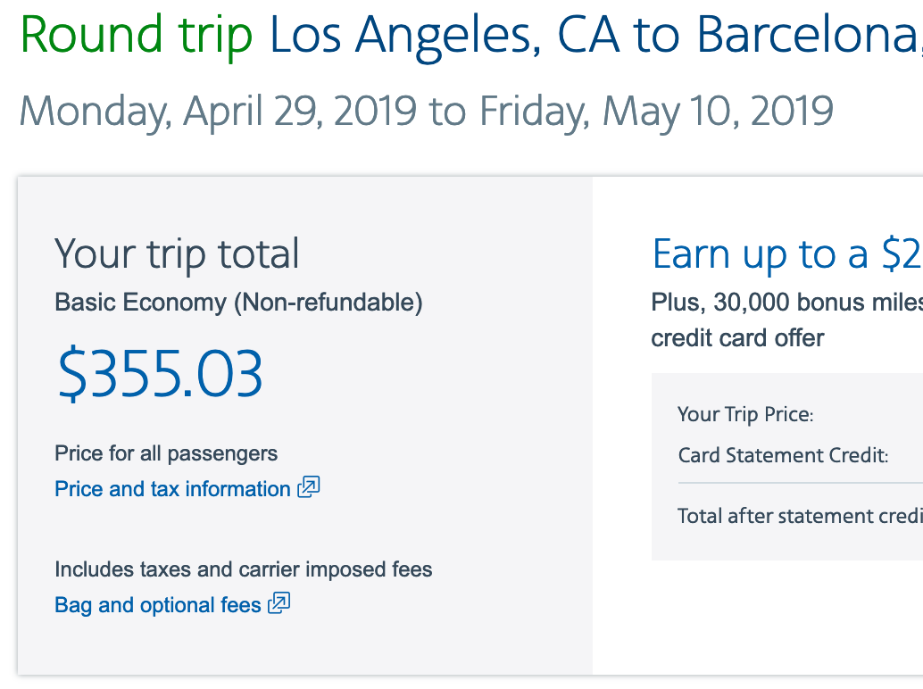 Los Angeles (LAX) to Barcelona (BCN) for $356 round-trip on American Airlines in April, May: