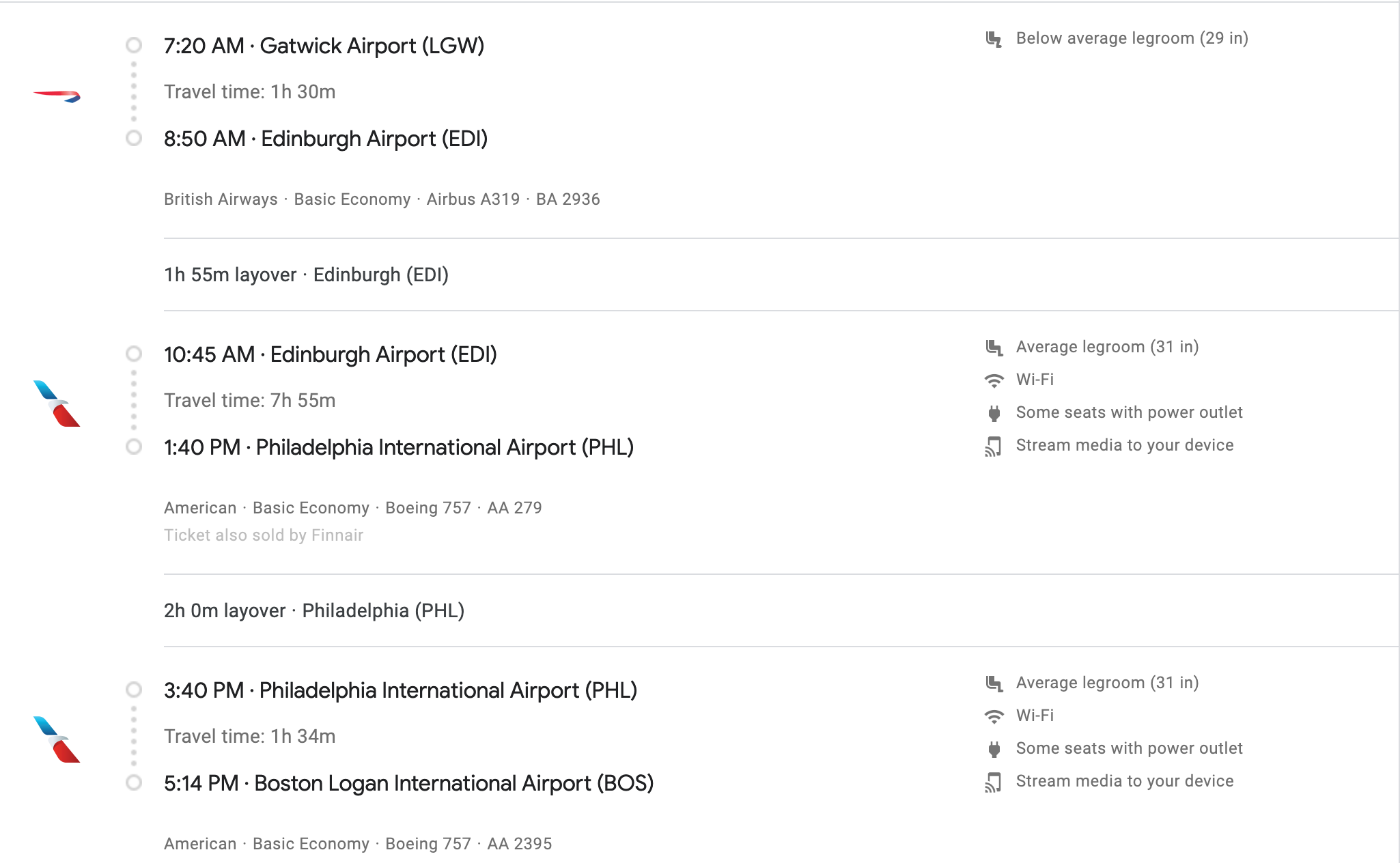 Airlines: American Airlines, British Airways, Finnair, Swiss, TAP Air Portugal, United