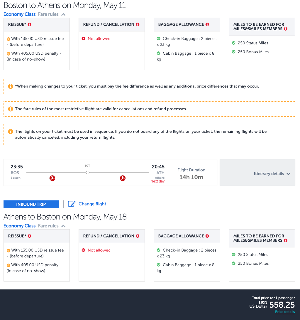 Boston (BOS) to Athens (ATH) for $558 round-trip on Turkish Airlines:
