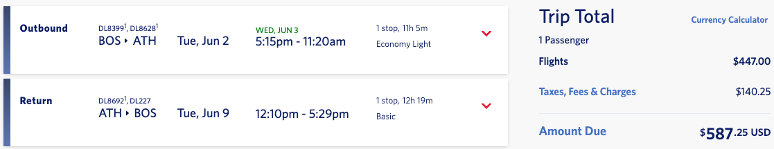 Boston (BOS) to Athens (ATH) for $587 round-trip on Delta: