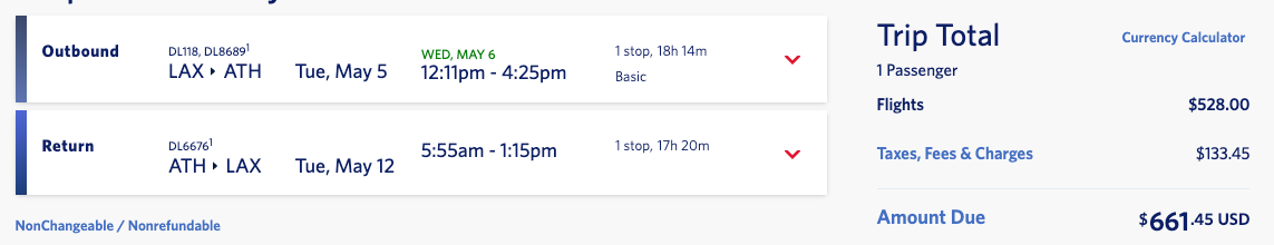 Los Angeles (LAX) to Athens (ATH) for $661 round-trip on Delta: