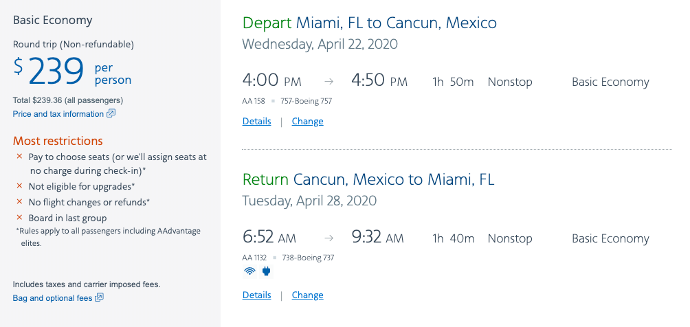 Miami (MIA) to Cancun (CUN) for $239 round-trip on American: