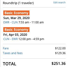 Newark (EWR) to Cancun (CUN) for $251 round-trip on United: