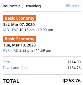 Washington D.C. (IAD) to Puerto Vallarta (PVR) for $269 round-trip on United: