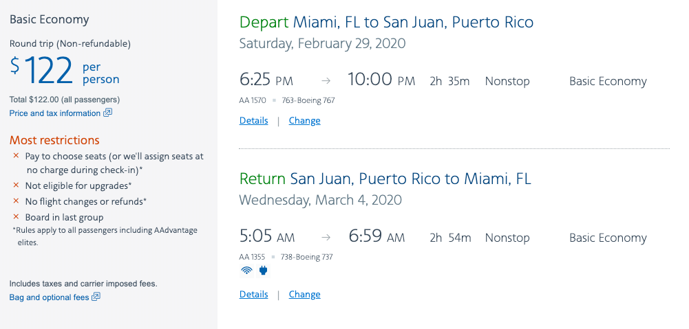 Miami (MIA) to San Juan (SJU) for $122 round-trip on American:
