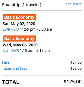 Newark (EWR) to San Juan (SJU) for $125 round-trip on United: