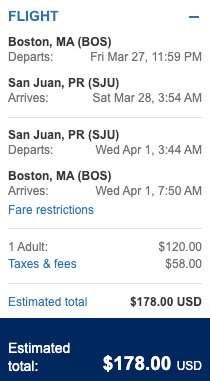 Boston (BOS) to San Juan (SJU) for $125 round-trip on JetBlue: