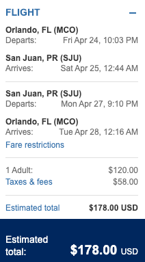 Orlando (MCO) to San Juan (SJU) for $178 round-trip on JetBlue: