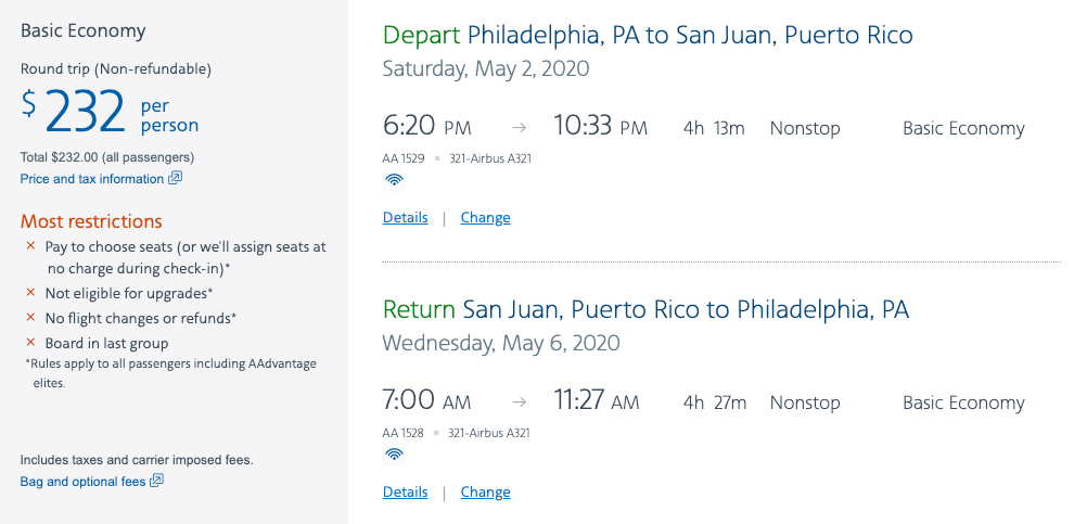 Philadelphia (PHL) to San Juan (SJU) for $232 round-trip on JetBlue: