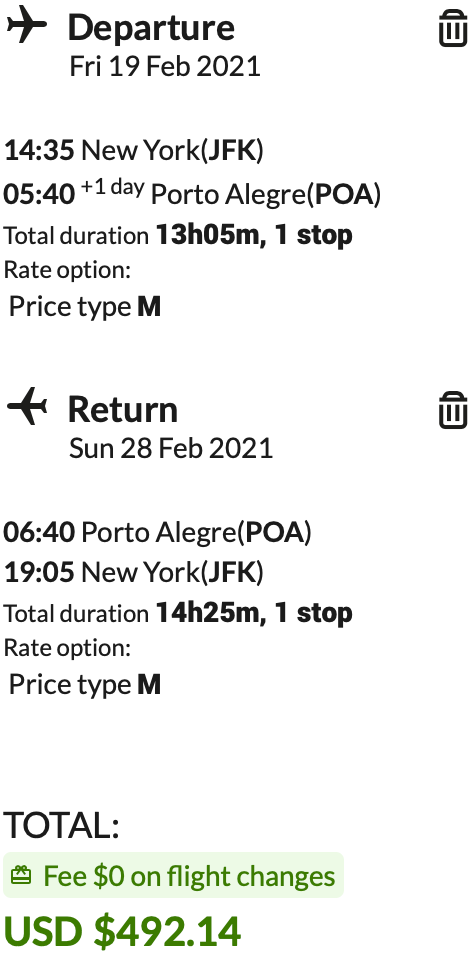 New York-JFK to Porto Alegre (POA) for $492 round-trip on Avianca: