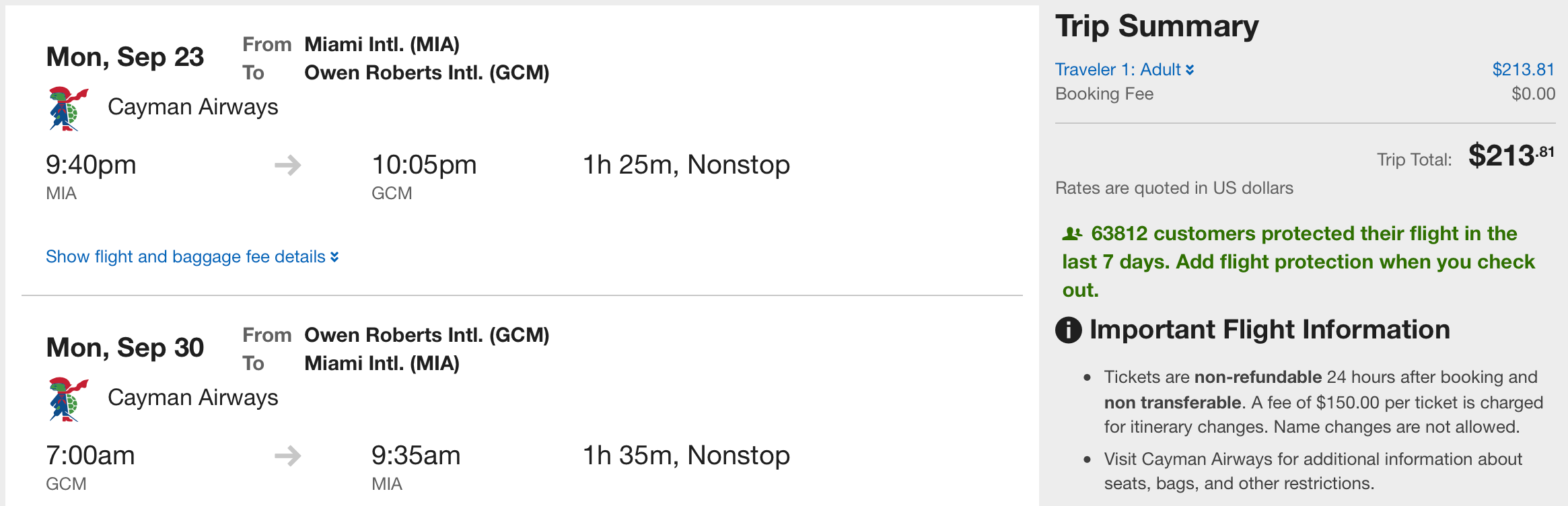 The low fares are being offered by American Airlines, Cayman Airways and JetBlue, but if you have a choice of carriers, you might want to avoid American as most of its lowest fares are for basic economy, which doesn't let you select your seat, get an upgrade or earn elite qualifying credits as usual. If you do get stuck with a basic economy ticket, you can combat some of the negative aspects of basic economy with a cobranded credit card.