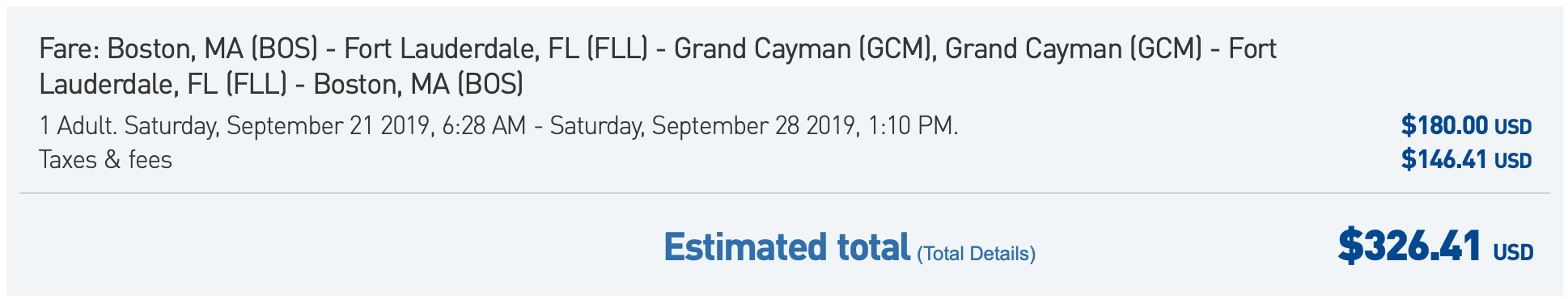 Boston (BOS) to Grand Cayman (GCM) for $326 round-trip in economy on JetBlue: