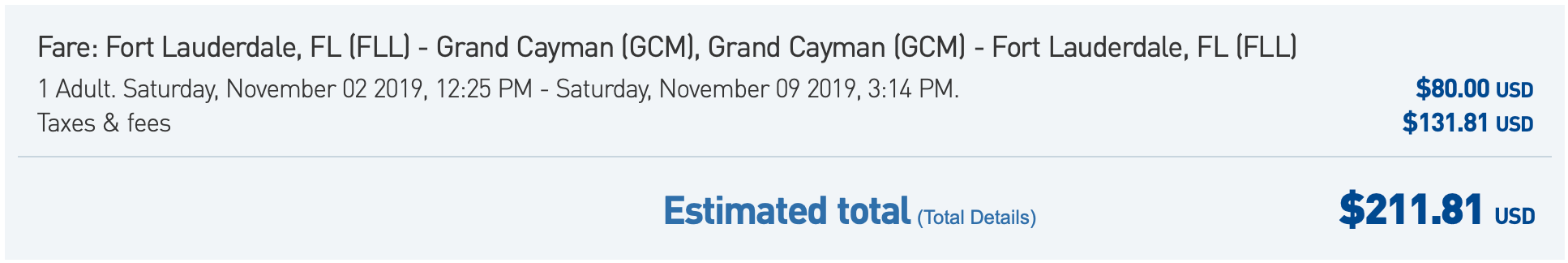 Fort Lauderdale (FLL) to Grand Cayman (GCM) for $212 round-trip in economy on JetBlue: