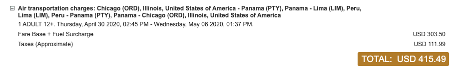 Chicago (ORD) to Lima (LIM) for $415 round-trip on Copa: