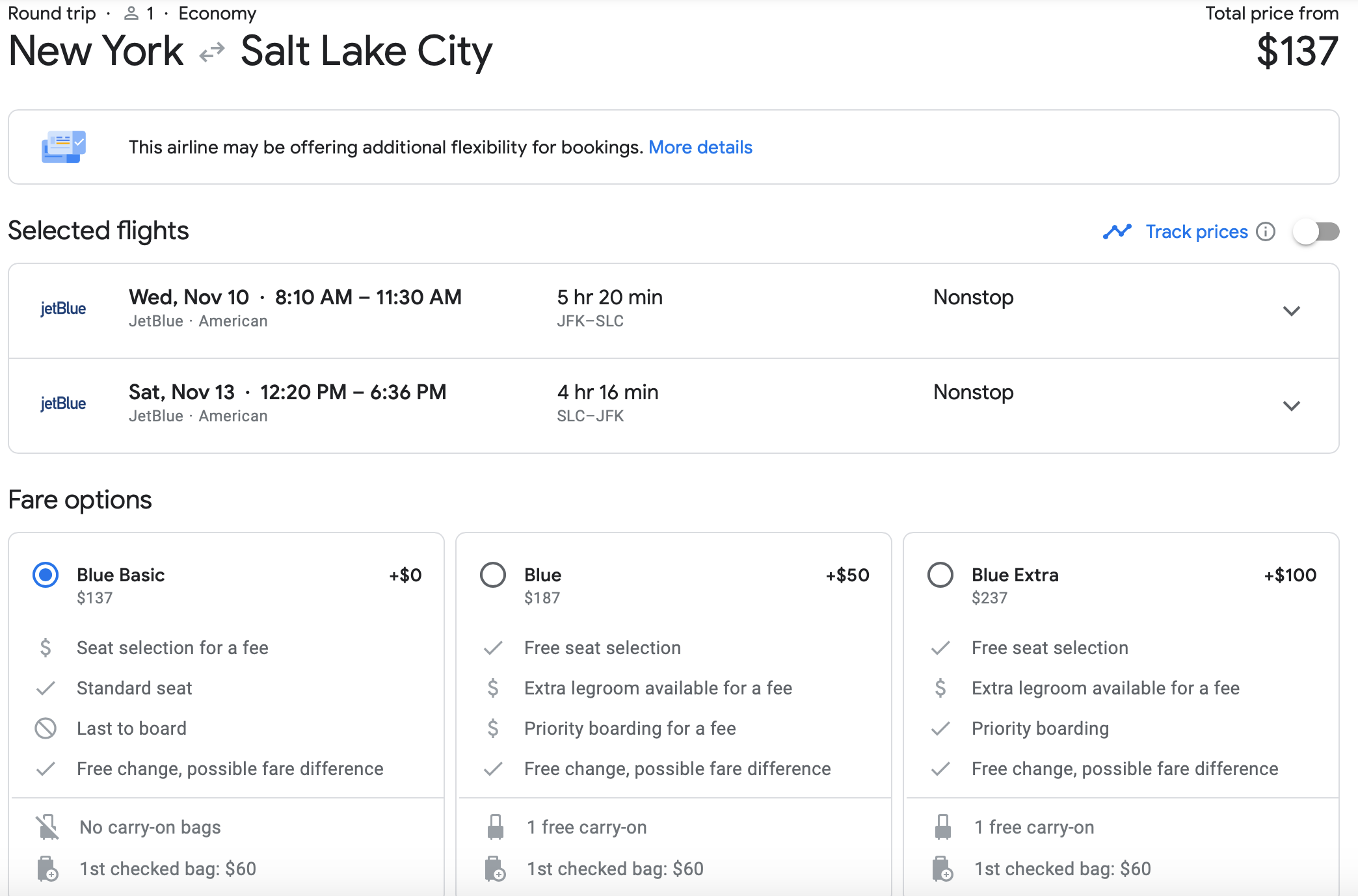 We found plenty of options to book JFK-SLC seats for $137, especially in October.