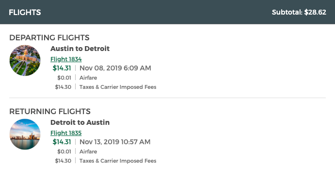 Austin (AUS) to Detroit (DTW) for $29 round-trip: