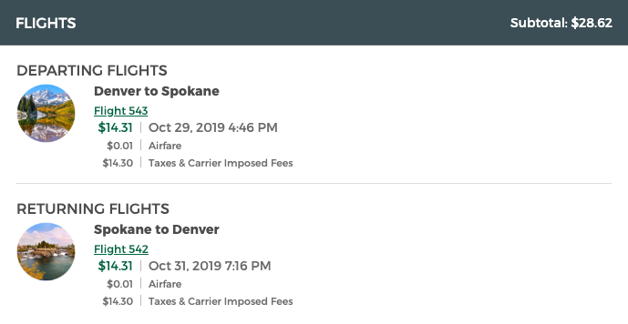 Denver (DEN) to Spokane (GEG) for $29 round-trip: