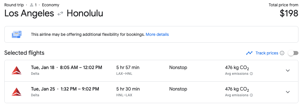 Similarly, here's a round-trip flight on Delta from Los Angeles to Honolulu for $198.