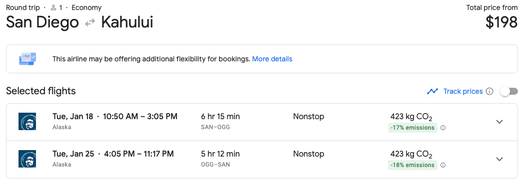 Let's start with the below round-trip flight on Alaska Airlines from San Diego to Maui for less than $200.